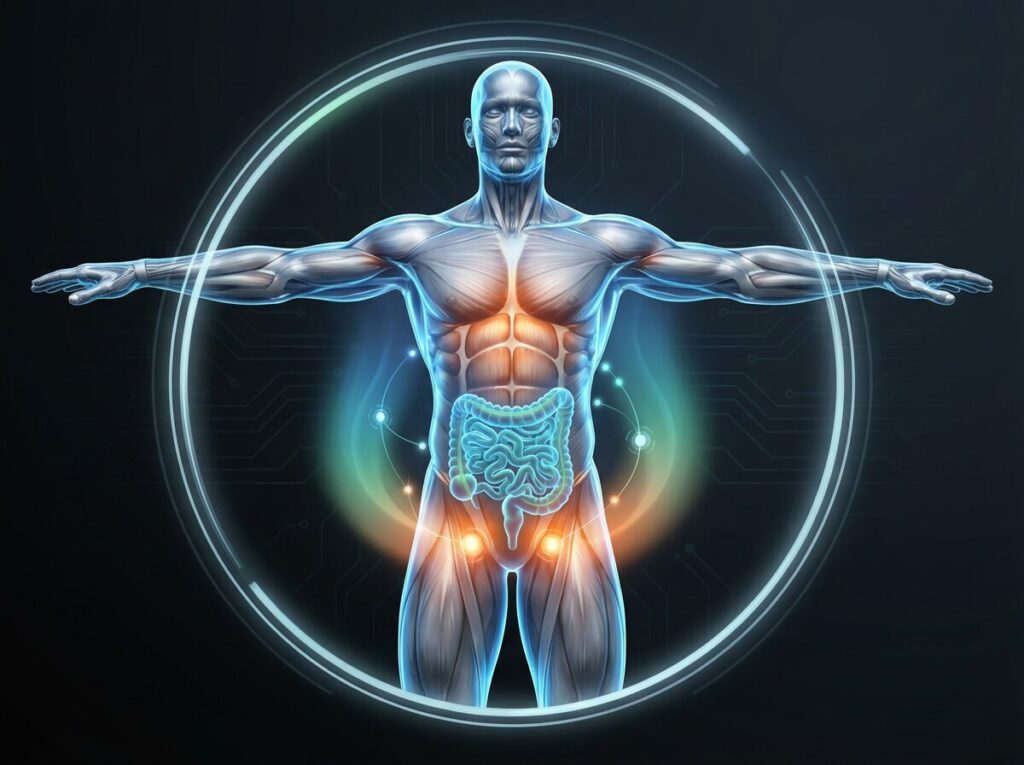 Diese Verbindung wird wissenschaftlich als Gut-Gonadal-Axis (Darm-Gonaden-Achse) bezeichnet. Sie erklärt, warum Männer mit chronischen Magen-Darm-Problemen, Dysbiose oder entzündlichen Darmerkrankungen häufiger niedrigere Testosteronwerte aufweisen – und warum umgekehrt Maßnahmen zur Darmgesundheit indirekt die hormonelle Balance unterstützen können.